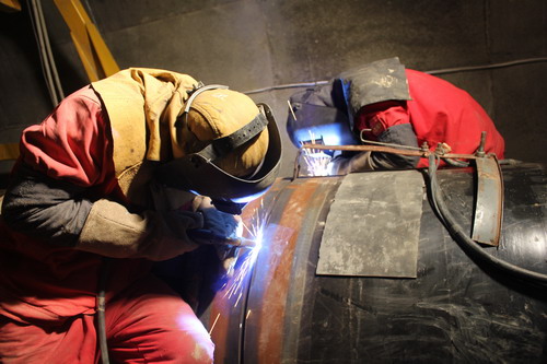 在隧道內(nèi)、河谷段、山坡上都有管道人的身影。針對(duì)目前天氣依然寒冷的情況,為確保施工質(zhì)量,員工嚴(yán)格按照施工要求,做好焊接前加熱和保溫工作。為保證工期,員工實(shí)行兩班倒施工作業(yè)。